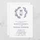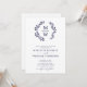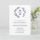 Todo en un código QR RSVP Classic Navy Blue Monograma Invitación a la boda botánica de la corona... La parte delantera de nuestra minimalista invitación a la boda presenta una florida corona botánica azul marino con las iniciales del monograma de la novia y el novio sobre el texto personalizado de la invitación en serif de marina y sans serif tipografía sobre un fondo blanco crujiente. En la parte posterior de la invitación se muestra el código QR de su sitio web boda, así como la propia dirección URL del sitio web, lo que permite a los invitados acceder fácilmente a RSVP en línea y ver todos los detalles enviados normalmente en un paquete boda. El código QR de ejemplo y todo el texto de ejemplo se pueden revisar fácilmente con su propia información sobre la plantilla de personalización.