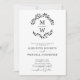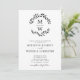 Todo en un código QR RSVP Classic Monograma blanco y negro Invitación a la boda de la corona... En el frente de nuestra minimalista invitación a la boda se presenta una florida corona botánica con las iniciales del monograma de la novia y el novio sobre el texto personalizado de la invitación en serif negro y tipografía sans serif sobre un fondo blanco resquebrajado. La parte negra clásica de la invitación también muestra el código QR de su sitio web boda, así como la propia URL del sitio web, lo que permite a los invitados acceder a RSVP en línea y ver todos los detalles enviados normalmente en un paquete boda. El código QR de ejemplo y todo el texto de ejemplo se pueden revisar fácilmente con su propia información sobre la plantilla de personalización.