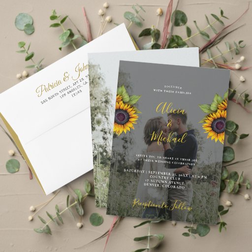 Modern elegant script yellow sunflowers weddingDiseñado por Anka Designs
