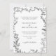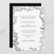 Invitación Código QR Clásico Formal Negro Blanco Floral Boda
