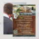 Una invitación romántica para una fiesta posterior a la boda que incluye un libro con una rosa en un paisaje soñador y un fondo de texto de madera oscura. La plantilla de código QR facilita la adición de la URL de su sitio web personalizado. En la parte posterior hay varias opciones. Puede reemplazar la foto con la suya. O elimine la foto de la plantilla y en el editor avanzado revele un fondo de madera o elija un color de fondo. Ideal para una recepción o celebración después de la boda para amantes de los libros.
