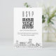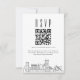 Una mínima tarjeta de códigos QR rsvp de boda con un hermoso paisaje estilizado que representa la ciudad de Baltimore. Reemplace el código QR por uno que incluya un enlace a su sitio web para ayudar a que la respuesta a su evento boda sea más fácil para sus futuros invitados.