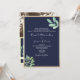 Invitación Código QR de Boda Azul Marino Botánico