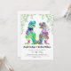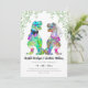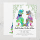 Deleite a sus invitados con esta divertida y colorida invitación de boda temática de dinosaurios psicodélicos con divertidos novios dinosaurios y follaje de acuarela. Fácil de personalizar con los nombres de los novios, la fecha de la boda y todos los detalles del lugar de la boda en tipografía moderna. Divertidas ilustraciones de novios T-Rex en tonos rosa, púrpura, azul, verde, amarillo y naranja con vegetación de eucalipto. Arte de dinosaurio original y único de la artista Catherine Sweetman.