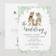 Para la pareja que comparte un amor por los dinosaurios, esta moderna invitación de boda con tema de dinosaurio T-Rex es la forma perfecta de celebrar su gran día. Con una divertida pareja de dinosaurios T-Rex novios, este diseño divertido y peculiar combina su amor por los dinosaurios con elegantes elementos botánicos. La invitación muestra follaje de eucalipto en acuarela, creando un ambiente fresco y natural que complementa perfectamente la tipografía moderna.