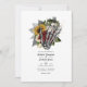 Invitación de boda de mano esquelética gótica floral de otoño vintage personalizable a los detalles de su evento. Ideal para cualquier tema o boda en el jardín. El código QR en el reverso dirige a su sitio web de boda donde la gente puede obtener más información y responder.