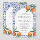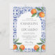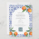 Invitación Código QR de boda mediterránea baldosas azules acu
