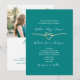 Disfrute de la elegancia moderna con nuestra verde azulada invitación "todo en uno". Con una caligrafía elegante y un sutil corazón de cuerda dorada, esta invitación exuda sofisticación. Personalízalo con una foto de la pareja e incluya un código QR para un RSVP sin esfuerzo y acceso a su sitio web boda. Fije el tono de su día especial con este diseño minimalista, donde cada detalle refleja la belleza de su historia de amor.