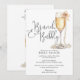 Esta elegante invitación de brunch y burbujas con letra script para despedida de soltera se puede personalizar con toda la información de su evento especial y el código QR del registro en el reverso. Diseñado por Thisisnotme©