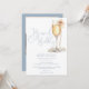 Esta elegante invitación de despedida de soltera con código QR de brunch y burbujas en azul polvoriento puede ser personalizada con toda la información de su evento especial y foto y código QR del registro en el reverso. Diseñado por Thisisnotme©