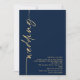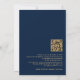 Código QR de Caligrafía Elegante Boda Navy Gold. Agregar su código QR al sitio web de su boda en el reverso hace que esta sea una opción conveniente para que sus invitados respondan y vean todos los detalles sin necesidad de tarjetas de RSVP y detalles separadas. El conjunto de letra estilizada se gira hacia el lado izquierdo, con todos los detalles elegantemente a la derecha con mucho espacio en blanco para una sensación contemporánea. Personalice fácilmente con sus detalles. Y cambie el color del texto y del fondo si lo desea a través de la opción editar más.