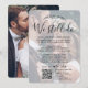 Si circunstancias inesperadas causaron un aplazamiento de la recepción de su boda, el primer aniversario es una oportunidad perfecta para celebrar un año después. Invite a familiares y amigos a una sencilla y elegante fiesta de primer aniversario con una elegante invitación moderna de 2 fotos todo en uno con código QR para confirmar asistencia. Toda la redacción es fácil de personalizar, incluyendo la cita que dice "un año después todavía nos amamos". Personalícela para cualquier cantidad de tiempo entre la ceremonia de boda y la fiesta de aniversario, ya sea solo unos meses o varios años. Incluya cualquier información que desee, como la fecha de la boda, planes de renovación de votos, detalles de la fiesta post-elopement, ubicación de la ceremonia de boda secuela, código de vestimenta, etc. (CONSEJO DE UBICACIÓN DE IMAGEN: Una forma fácil de centrar una foto exactamente como la desea es recortarla antes de subirla al sitio web de Zazzle). Al escanear el código QR con su teléfono, los invitados son enviados directamente al sitio web de la boda para responder a la invitación. Un proceso de confirmación de asistencia en línea reduce la posibilidad de que las tarjetas se pierdan en el correo. También es más versátil, ya que puede pedir información más detallada, como opciones de comida, alergias alimentarias y solicitudes de canciones. Toda la información de respuesta se puede personalizar o eliminar