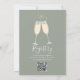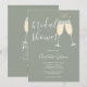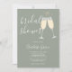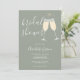 Una elegante invitación de despedida de soltera con copas de champán y nombre en letra script, esta invitación elegante se puede personalizar con su información en letra chic sobre un fondo verde sage. Con su código QR de registro en la parte posterior. Diseñado por Thisisnotme©