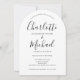 Con nombres de estilo de firma, esta elegante invitación de boda en blanco y negro se puede personalizar con toda la información especial de su boda en la parte delantera y los detalles de su sitio web de boda y código QR en el reverso. Diseñado por Thisisnotme