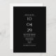 Un diseño minimalista moderno con detalles especiales de fecha y boda en una tipografía clásica de moda sobre fondo negro. Con los detalles del sitio web de su boda y su código QR al revés. Diseñado por Thisisnotme©