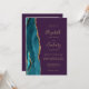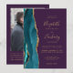 El borde izquierdo de esta elegante invitación de boda moderna presenta un borde de ágata de acuarela azul teñido recortado con brillo dorado falso. El texto personalizable combina escritura a mano de color dorado, fuentes copperplate e itálicas sobre un fondo morado. Agregue su foto favorita al reverso, junto con texto adicional y un código QR para enviar a los invitados a su sitio web de bodas.