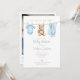 Esta linda invitación para baby shower cuenta con una hermosa ropa tendida de bebé niño azul y se puede personalizar con tus datos en tipografía elegante. El reverso cuenta con tu foto especial y un código QR de registro. Diseñado por Thisisnotme©