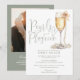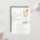 Esta elegante invitación de despedida de soltera con perlas y prosecco en verde salvia con letra script puede ser personalizada con toda la información de su evento especial y foto, y código QR de registro en el reverso. Diseñado por Thisisnotme©