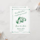 Esta Invitación de Guardar la Fecha Verde Dibujada a Mano y Caprichosa combina una apariencia artística juguetona con la comodidad moderna. Con elementos delicados dibujados a mano, una paleta de colores verdes frescos, tu foto personal y un código QR incorporado para un fácil acceso a RSVP o sitio web de la boda — es la combinación perfecta de encantador y práctico.