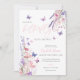 Esta bonita y elegante invitación para baby shower cuenta con flores silvestres y mariposas y se puede personalizar con tus datos en tipografía elegante. El reverso cuenta con tu foto especial y un código QR de regalo. Diseñado por Thisisnotme©