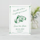 Esta invitación caprichosa y dibujada a mano en verde para guardar la fecha combina una apariencia artística juguetona con la comodidad moderna. Con elementos delicados dibujados a mano, una paleta de colores frescos y verdes, su foto personal y un código QR incorporado para un fácil acceso a la respuesta o sitio web del matrimonio — es la combinación perfecta de encantador y práctico.