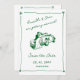 Esta Invitación de Ahorro de Fecha de Boda Verde Dibujada a Mano y Caprichosa combina una apariencia artística juguetona con la comodidad moderna. Con elementos delicados dibujados a mano, una paleta de colores verdes frescos, su foto personal y un código QR incorporado para una fácil respuesta o acceso al sitio web de la boda — es la combinación perfecta de encanto y practicidad.