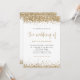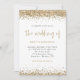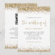 Bordes de confeti brillantes dorados para boda con letra script. Un conjunto elegante de tipografía en dorado para el título principal "La Boda De" que complementa el resto del texto que puede personalizar fácilmente, con bordes de confeti brillantes dorados en la parte superior e inferior y también en la parte trasera. Agregue su código QR a su sitio web de boda en la parte posterior, lo que hace que sea una opción conveniente para que sus invitados respondan y vean todos los detalles sin necesidad de tarjetas de respuesta y detalles separadas.