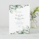 Esta invitación a la boda de eucalipto acuarela es mínima y elegante. El verde esmeralda y el sabio son tendencia para primavera, verano y otoño. El sencillo guión es clásico. La parte posterior de la invitación incluye su fotografía (que tiene un filtro) junto con un mensaje y un código QR