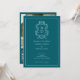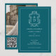 Estas elegantes invitaciones de código QR para la fiesta de compromiso con diseño de texto minimalista azul y blanco presentan un marco clásico en el borde. Agregue sus iniciales o monograma para hacerlas completamente suyas.
