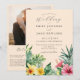 Esta elegante invitación de boda con flores tropicales de acuarela en tono melocotón puede ser personalizada con su información en tipografía moderna con el código QR de su sitio web de boda en el reverso junto a una foto especial. Diseñado por Thisisnotme©