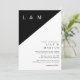 Esta elegante invitación a la boda en blanco y negro, minimalista, puede ser personalizada con su información en tipografía moderna y su dirección web boda código QR al revés. Diseñado por Thisisnotme©