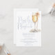 Esta elegante invitación de fiesta de despedida de soltera con perlas y prosecco en azul polvoriento se puede personalizar con toda la información de su evento especial y el código QR del registro en el reverso. Diseñado por Thisisnotme©