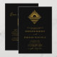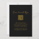 Invitación de boda con código QR del logotipo del sol y el océano en dorado sobre negro... La parte delantera de nuestra invitación de boda en dorado sobre negro presenta un logotipo de sol metálico dorado falso sobre agua, que representa un destino de boda donde el sol sale o se pone sobre un océano. Justo debajo está el texto de su invitación personalizada en tipografía serif y sans serif dorada sobre un elegante fondo negro. La parte trasera de la invitación muestra el código QR del sitio web de su boda, así como la URL del sitio web, lo que permite a sus invitados responder en línea fácilmente y ver todos los detalles que normalmente se envían en un paquete de boda. El código QR de ejemplo y todo el texto de ejemplo (aparte de los elementos de caligrafía) se pueden revisar fácilmente con su propia información en la plantilla de personalización.