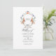 Invitación de boda con una caprichosa cresta temática de bosque que se puede personalizar con las iniciales de la pareja. El código QR en el reverso dirige a su sitio web de boda donde la gente puede obtener más información y responder.