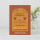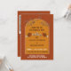 Tener el diseño perfecto para tu invitación de boda es imprescindible para aumentar el ambiente de celebración y el tema de este gran día y ocasión especial. Para hacerlo inolvidable y valioso también, el tema visual debe ser hermosamente atractivo. Esta plantilla presenta un estilo boho vintage chic resaltado por la paleta de colores naranja quemado terracota, marrón oscuro y amarillo. El patrón botánico o de hojas con efecto de elemento estampado incorporado hace que el diseño de fondo sea elegante, atractivo y sofisticado. El arco amarillo y el abstracto botánico con los estilos de fuente retro también añaden creatividad a la estructura visual. Agrega tu foto favorita de ti y tu pareja en la parte posterior dentro del marco de la imagen para hacerlo más personalizado y único.