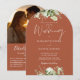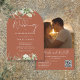 Esta invitación de boda floral de terracota boho rústica puede ser personalizada con su información en tipografía elegante moderna con su foto especial, detalles del sitio web de la boda y su código QR en el reverso. Diseñado por Thisisnotme