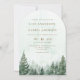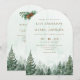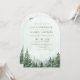 Esta invitación de arco de boda con bosque de pino acuarela rústico y elegante se puede personalizar con su información en tipografía moderna y el código QR de la dirección de su sitio web de boda en el reverso. Diseñado por Thisisnotme©