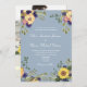 Elegante, campestre, rústico, botánico, polvorienta invitación de boda todo en uno azul con código QR para RSVP, sitio web, foto de la pareja, flores de color boho, girasoles y escritura moderna.