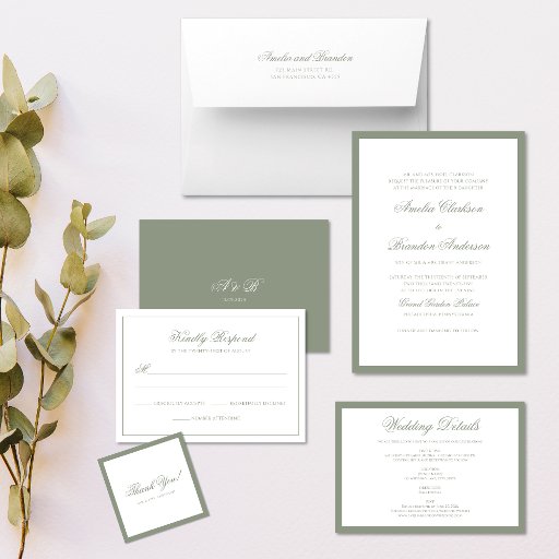 El clásico formal Sage Green Border Boda QR Code Invitation combina elegancia atemporal con comodidad moderna. Esta invitación incluye un código QR para facilitar los detalles de RSVP o boda, haciendo que la planificación sea perfecta. ¡Ideal para los bodas de primavera y verano!