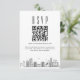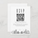 Una mínima tarjeta de códigos QR rsvp de boda con un hermoso paisaje estilizado que representa la ciudad de Brooklyn. Reemplace el código QR por uno que incluya un enlace a su sitio web para ayudar a que la respuesta a su evento boda sea más fácil para sus futuros invitados.