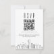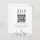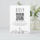 Una mínima tarjeta de código QR rsvp de boda con un hermoso paisaje estilizado que representa la ciudad de Dallas, Texas. Reemplace el código QR por uno que incluya un enlace a su sitio web para ayudar a que la respuesta a su evento boda sea más fácil para sus futuros invitados.
