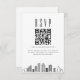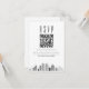 Una mínima tarjeta de código QR rsvp de boda con un hermoso paisaje estilizado que representa la ciudad de Houston, Texas. Reemplace el código QR por uno que incluya un enlace a su sitio web para ayudar a que la respuesta a su evento boda sea más fácil para sus futuros invitados.