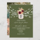 Elegante, moda, boho, acuarela floral, melocotón y invitación a la boda verde con foto, sitio web y código QR para rsvp.