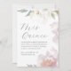Esta elegante invitación a las quinceañeras de 15 años de San Pedro de San Quince presenta un estilo romántico con sus detalles personalizados de celebración de quinceañera, hora de masas e información de recepción. Esta bonita tarjeta de invitación incluye flores de color pastel, blancas y rosas, con vegetación y texto gris sobre un sencillo fondo blanco. La parte posterior es el código rsvp qr. Personalizar con sus propios detalles.