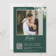 Esta invitación a la fiesta de compromiso presenta un estilo minimalista moderno y elegante, con formas de hojas de vegetación acuáticas y hermosas caligrafías y fuentes tipográficas limpias y serif sobre un fondo verde esmeralda. La sencillez de este diseño le da un toque de elegancia a su boda. Funciona bien con muchos temas bodas y sin duda una gran adición a su boda. Simplemente personalizar los nombres y la redacción en unos pocos pasos fáciles y personaliza la tarjeta de invitación con la foto de la pareja feliz y reemplaza el código QR con el tuyo en la parte posterior de la invitación para darle un agradable toque personal. Nota: La elegante y bella tipografía frases de "fiesta de compromiso" y "amablemente rsvp a" en la parte delantera de la invitación Y el "registro de regalos" en la parte posterior de la invitación junto con la vegetación acuarela hojas de eucalipto arreglos y otros elementos de arte gráfico como las líneas y cajas rectangulares no pueden editarse, cambiarse, moverse o eliminarse. Están arreglados. Si necesita cambiar el color, puede personalizar la tarjeta de invitación. Puede personalizar y personalizar la invitación para que se ajuste a sus necesidades de eventos de boda y simplemente haga clic en el personalizar de la invitación. Puede personalizar fácilmente la invitación con el texto como descarga digital y enviarla electrónicamente y compartirla con sus invitados a través de mensajes de texto, correo electrónico o medios sociales. También puede enviar o enviar la invitación a sus invitados. O se pueden obtener las dos cosas — invitación impresa y recibir la invitación en formato digital como descarga instantánea.