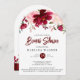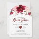 QR Code todo-en-uno color burdeos y agua rosada floral invitaciones a ducha de novia. nombres, fechas e información de personalizares.