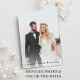 Elegante invitación de boda secreta o anuncio de boda privada y recepción o invitación para fiesta de celebración. "Happily Ever After Party" está escrito en una mezcla de tipografía blanca simple y una elegante escritura blanca con florituras. Personalice su mensaje e invitación con más detalle, cree un código QR vinculado a su sitio web de boda para que sus invitados lo escaneen para obtener más información y respondan en línea, y agregue sus nombres en una escritura con estilo de firma. El reverso presenta su foto de boda, sus nombres y las fechas de la boda y la recepción.