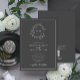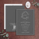 Invitación Código QR Escudo Gris Leafy Monograma Boda