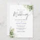 Esta elegante invitación de boda con hojas botánicas de vegetación se puede personalizar con su información en tipografía chic con los detalles de su sitio web de boda y su código QR en el reverso. Diseñado por Thisisnotme