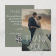 elegante gracias a la tipografía blanca moderna boda foto código qr digital y tarjeta impresa de dos caras, en el lado posterior mensaje de agradecimiento con código qr.